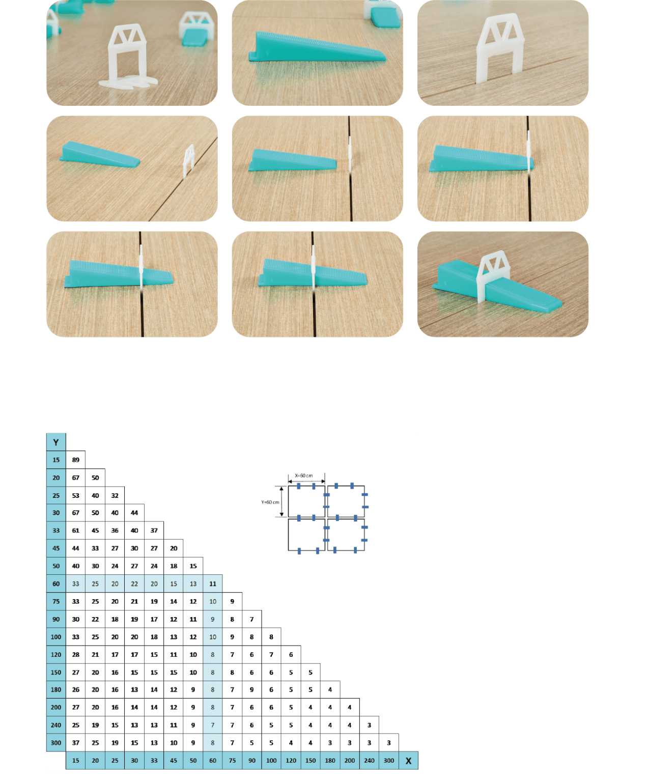 GooFix seviye tespit sistemi hem duvar hem zemin karolarının döşenmesine uygundur. GooFix seviye tespit sistemi takoz ve klipslerin birlikte kullanılması ile uygulamada kolaylık sağlar. GooFix seviye tespit sistemi, karoların aynı seviyede döşenmesine olanak sağlayarak karoların zemindeki dalgalanmalardan kaynaklanan hataları engeller.
